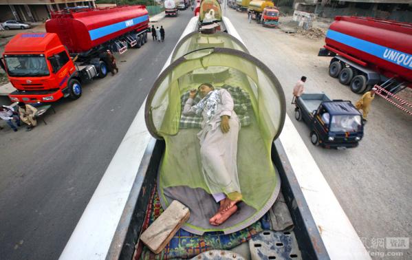 寰宇世界 :新闻精选照片带你看世界(图) 当地时间11月26日,卡拉奇,负责为驻扎在阿富汗的北约部队运送燃料的司机在一个燃料供应点休息。